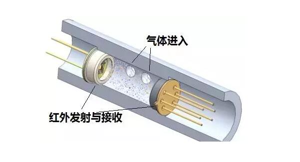 這種傳感器利用氣體對特定頻率的紅外光譜(pǔ)的吸收作(zuò)用製成。紅外光從發射端射向接收端,當有氣體時,對紅外光產生吸收,接收到的紅外光(guāng)就會減少,從而檢測出氣體含量。目(mù)前較先進的紅外式采用雙波長、雙接收器,使檢測更準確、可靠。